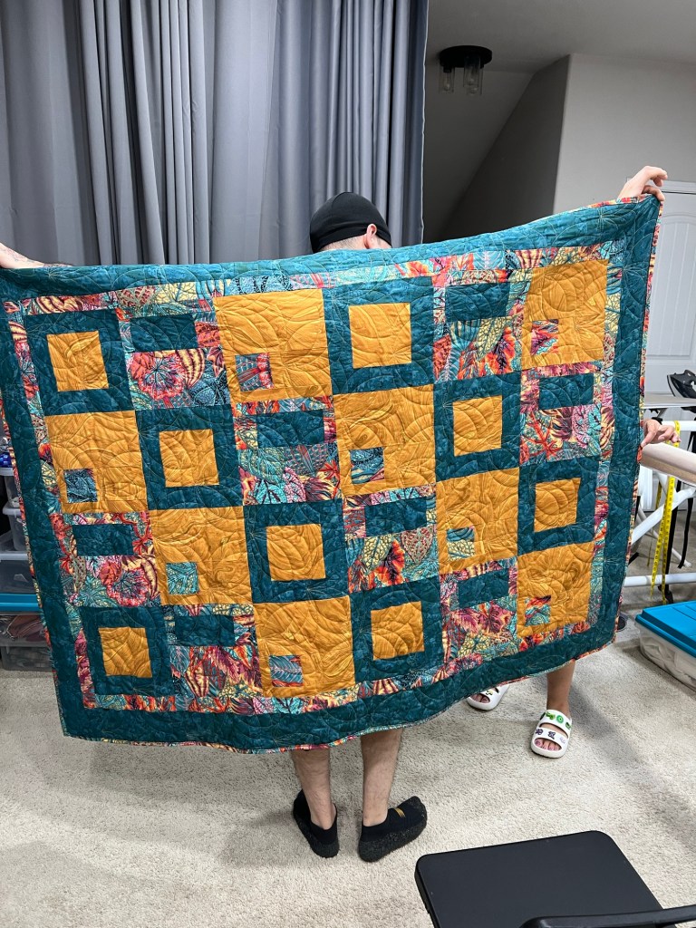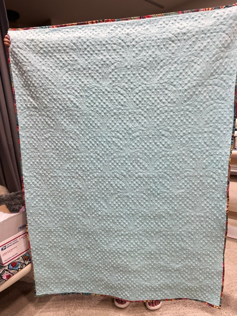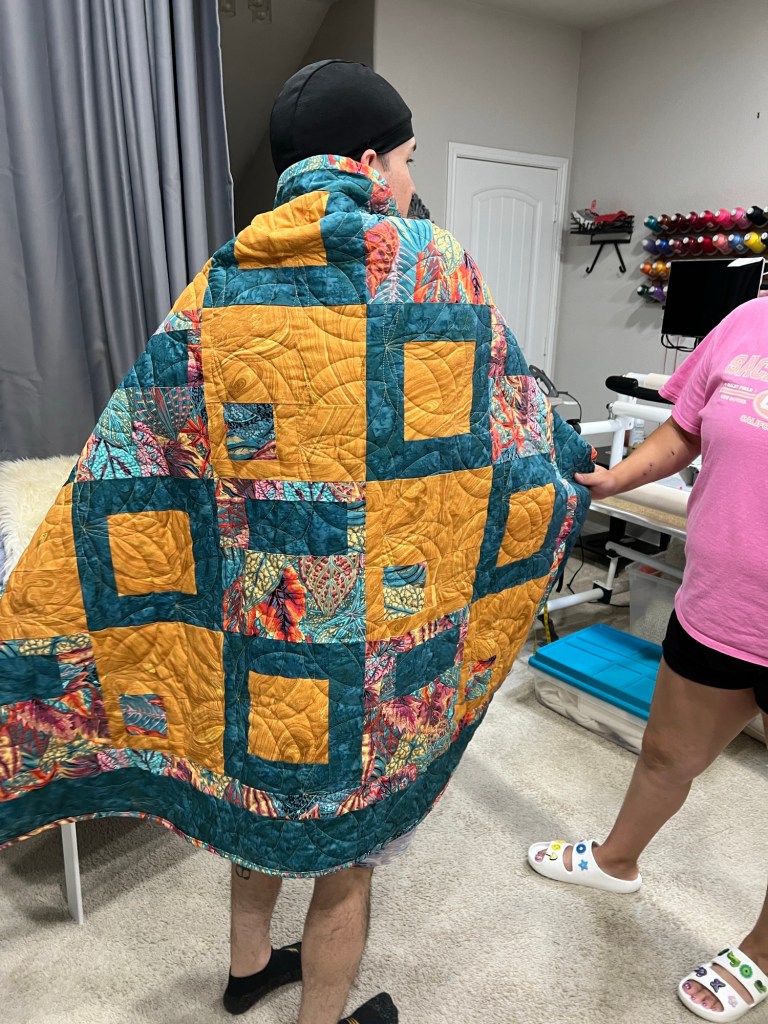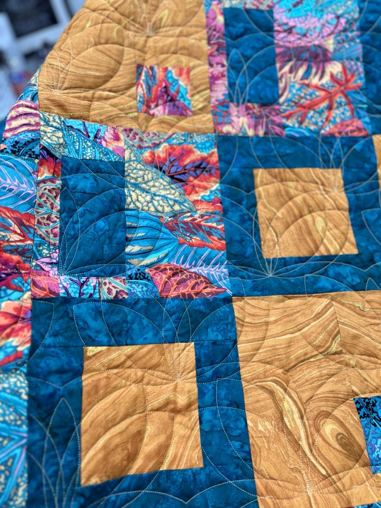 For me, answering this question brings to mind that all quilts provide not only comfort but also a measure of pure bliss and peace. Recently, I had the pleasure of creating a quilt with my youngest daughter. Julianne has inherited my Mother’s genetic dispositions when creativity strikes. She loves to play with colors, textures and scale. So with her quilt, you can see her bold and captivating patterns and color scheme. I am still in awe of her beautiful and very soft and comforting quilt.